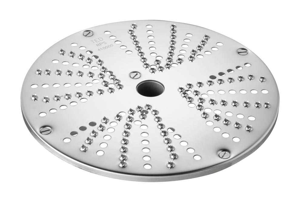 Za ribanje surovega krompirja za krompirjeve palačinke, ocvrt krompir, krompirjeve cmoke ter parmezan. Debelina rezanja: 3 × 3 × 5 mm, približna zmogljivost: cca. 120 kg/h