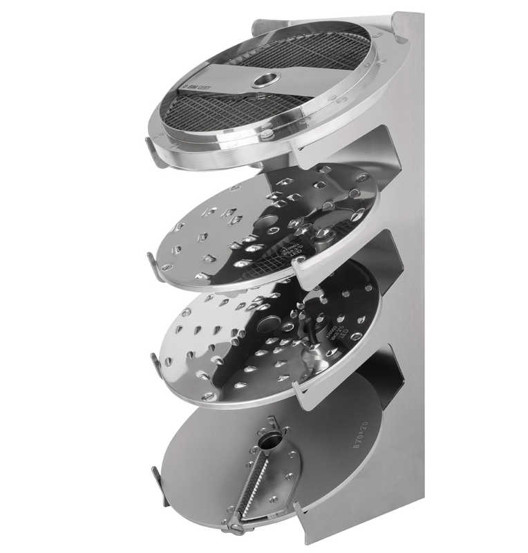 Za higiensko shranjevanje 4 plošč iz nerjavečega jekla ali 3 plošče in 1 naprave za kocke. Stojalo je enostavno postaviti (brez montaže), lahko pa se tudi pritrdi na steno.